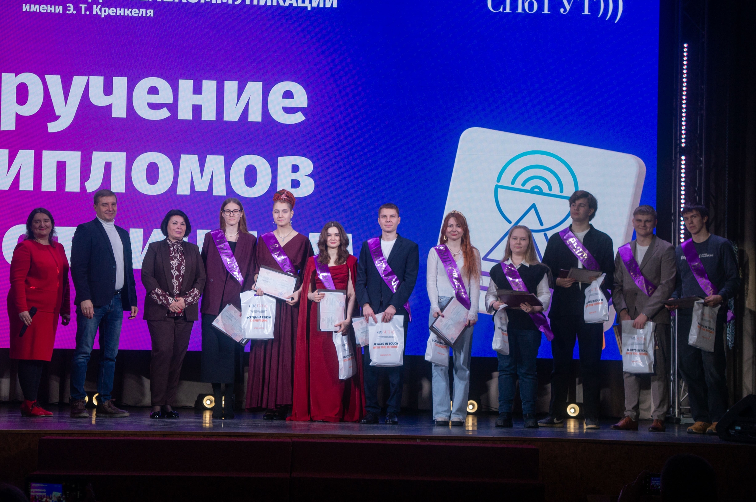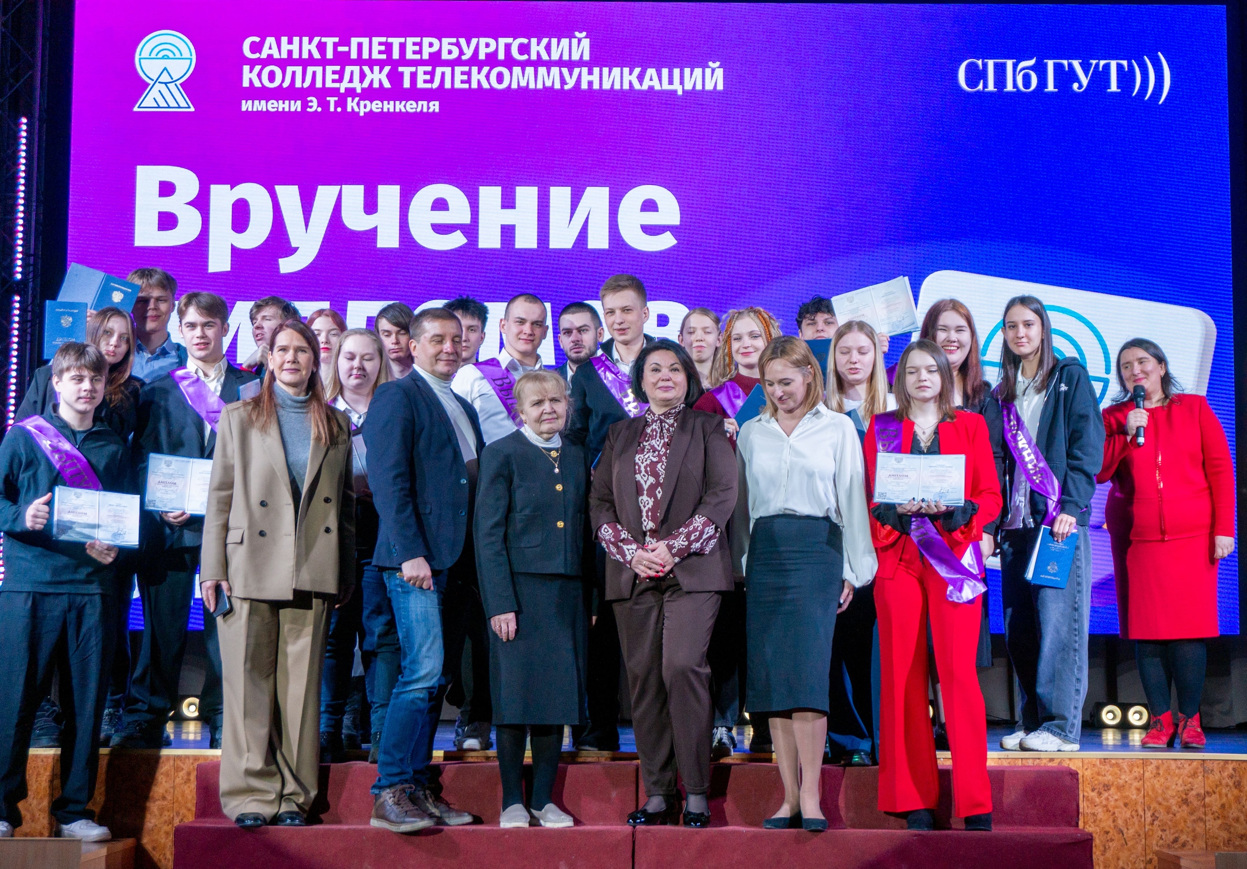 В актовом зале СПбГУТ 3 марта состоялась торжественная церемония вручения дипломов выпускникам Санкт-Петербургского колледжа телекоммуникаций им. Э. Т. Кренкеля. Зимний выпуск 2026 года —это 64 молодых специалиста специальностей «Радиосвязь, радиовещание, телевидение» и «Эксплуатация средств связи с подвижными объектами».